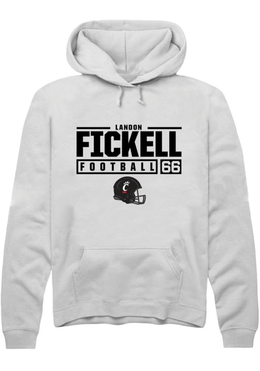 Landon Fickell Rally Mens White Cincinnati Bearcats NIL Stacked Box Hooded Sweatshirt