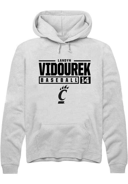 Landyn Vidourek Rally Mens White Cincinnati Bearcats NIL Stacked Box Hooded Sweatshirt