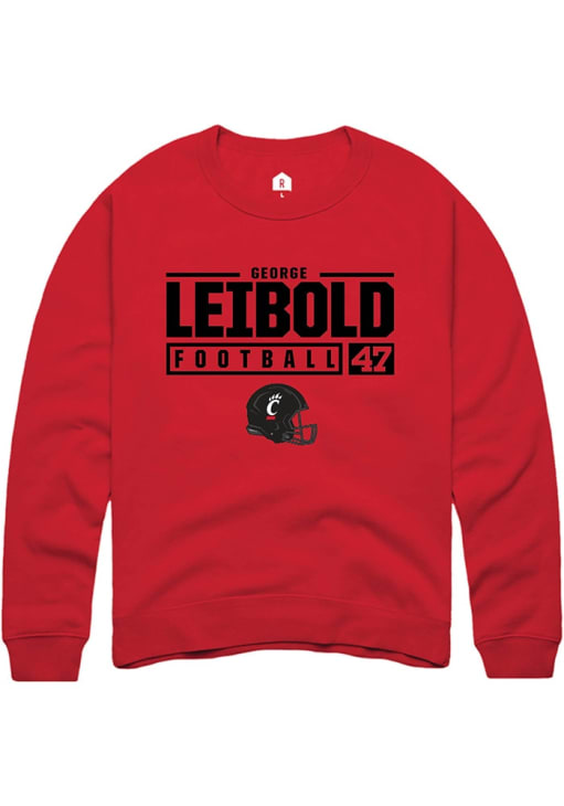 George Leibold Rally Mens Red Cincinnati Bearcats NIL Stacked Box Crew Sweatshirt