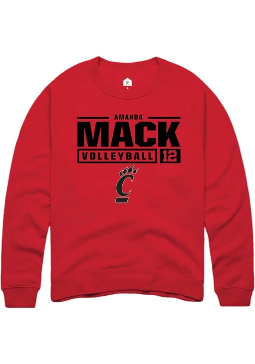 Amanda Mack Rally Mens Red Cincinnati Bearcats NIL Stacked Box Crew Sweatshirt