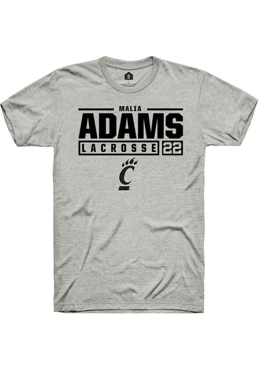 Malia Adams Ash Cincinnati Bearcats NIL Stacked Box Short Sleeve T Shirt