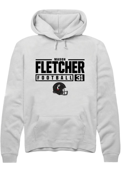 Mason Fletcher Rally Mens White Cincinnati Bearcats NIL Stacked Box Hooded Sweatshirt