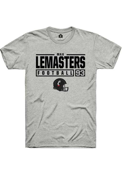Max Lemasters Ash Cincinnati Bearcats NIL Stacked Box Short Sleeve T Shirt