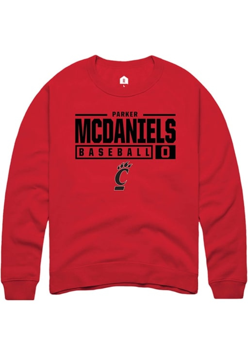 Parker McDaniels Rally Mens Red Cincinnati Bearcats NIL Stacked Box Crew Sweatshirt