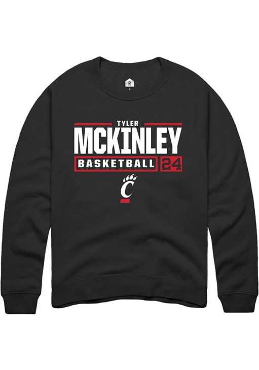 Tyler McKinley Rally Mens Black Cincinnati Bearcats NIL Stacked Box Crew Sweatshirt