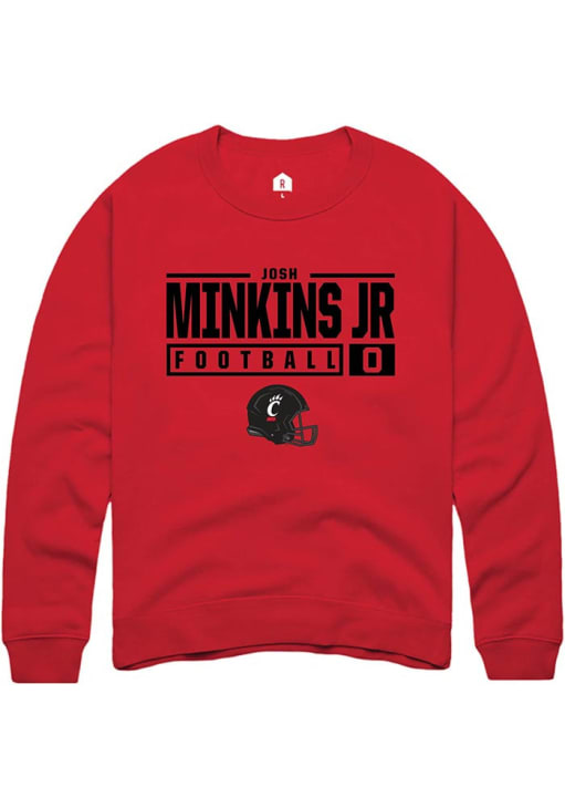 Josh Minkins Jr Rally Mens Red Cincinnati Bearcats NIL Stacked Box Crew Sweatshirt
