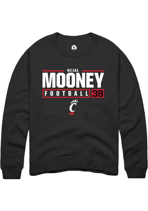 Nijal Mooney Rally Mens Black Cincinnati Bearcats NIL Stacked Box Crew Sweatshirt
