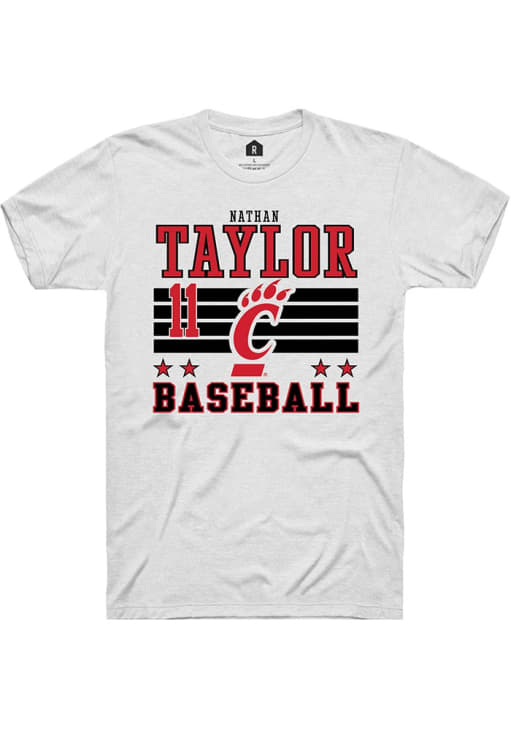 Nathan Taylor White Cincinnati Bearcats NIL Striped Short Sleeve T Shirt
