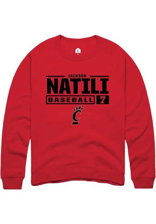 Jackson Natili Rally Mens Red Cincinnati Bearcats NIL Stacked Box Crew Sweatshirt