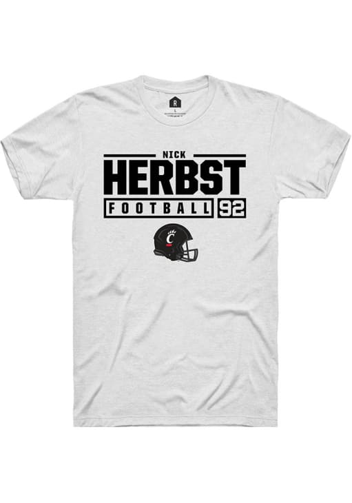 Nick Herbst White Cincinnati Bearcats NIL Stacked Box Short Sleeve T Shirt