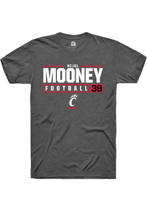 Nijal Mooney Dark Grey Cincinnati Bearcats NIL Stacked Box Short Sleeve T Shirt