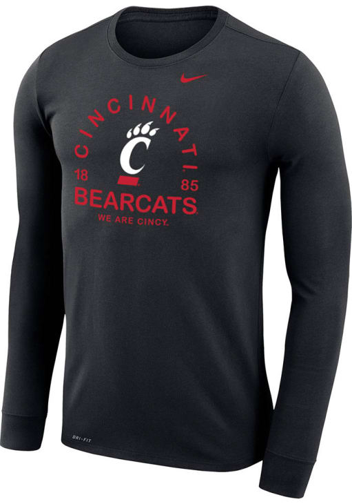 Size Chart for Mens Cincinnati Bearcats Black Nike Arched Mascot Long Sleeve T-Shirt