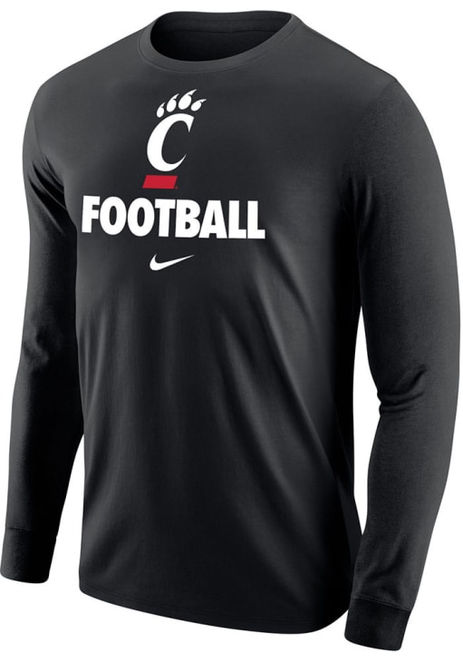 Show your Cincinnati Bearcats spirit in this Cincinnati Black T Shirt! This Cincinnati Football Long Sleeve T Shirt makes a great layer for cooler nights cheering on the Bearcats. Featuring a screenprint football graphic on front chest, this Cincinnati Bearcats Long Sleeve Tee is an essential addition for every fan. Go Bearcats!!