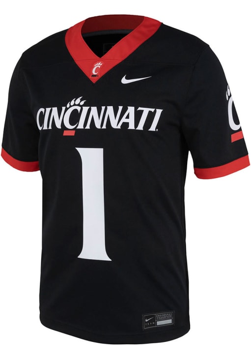 Get in the game with this ultimate Cincinnati Bearcats Mens Black Replica Style Football Jersey. Wear this Jersey to the upcoming tailgate or game for your Bearcats. With a screen print team wordmark and number on front with number on back, this Mens Football Jersey is a great way to show your team spirit in style.