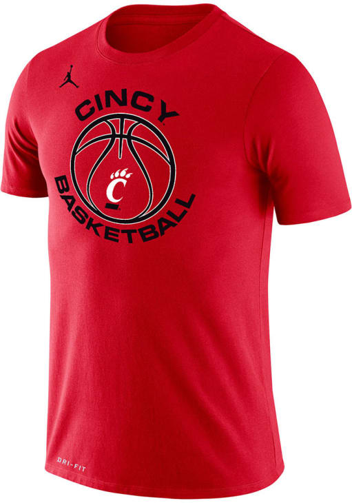 Stay cool and display your Cincinnati Bearcats spirit in this Red Jordan Basketball T Shirt. This Short Sleeve is the perfect Tee for working out, heading to class, or cheering on the Bearcats. Showcasing a screen print of team graphic on front chest, there's no mistaking your Cincinnati Bearcats pride in this Bearcats Jordan Basketball T Shirt!