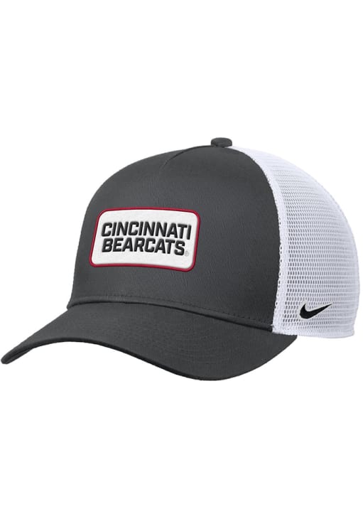 Product Details Product Details Nike - Mesh Back RiseTeam logo on frontMesh backingAdjustable closureNike swoosh on left hand sideCotton Poly BlendCurved BillHigh CrownStructuredWipe clean with cloth or cleaning kitImported Officially Licensed This Black Bearcats Adjustable Hat features a front embroidered team wordmark patch.