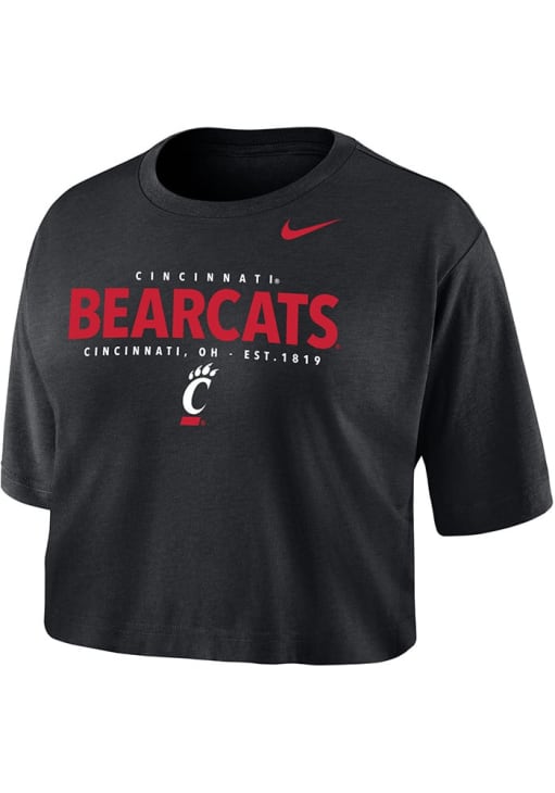 Display your team spirit with this remarkable Cincinnati Bearcats Black Crop Logo Short Sleeve T-Shirt! The Cincinnati Short Sleeve Tee showcases a screen print team name and logo on center chest that truly sets it apart. Stand out from the crowd and proudly declare your allegiance to the Bearcats with this exceptional Black Cincinnati T-Shirt. Go Bearcats!!