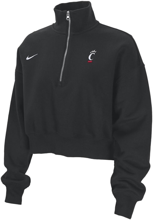 Embrace the warmth and showcase your Bearcats pride with our Cincinnati Bearcats Long Sleeve Qtr Zip. This Womens Black Phoenix Long Sleeve Pullover offers a screenprint team graphic on left chest for the perfect combination of comfort and style. Elevate your everyday look with this must-have Cincinnati Bearcats Long Sleeve Qtr Zip.