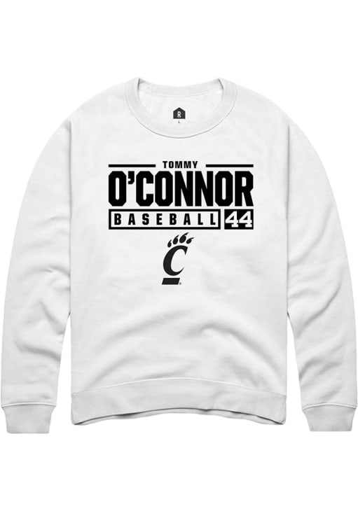 Tommy O'Connor Rally Mens White Cincinnati Bearcats NIL Stacked Box Crew Sweatshirt