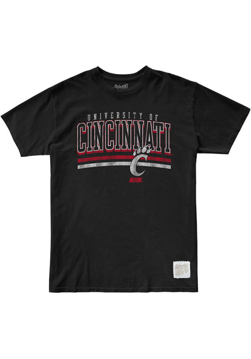 Support your Cincinnati Bearcats in this Black Short Sleeve Fashion Tee! This Vintage Lines Fashion T Shirt features a distressed screen print with University of Cincinnati with team logo on front chest. Be ready to yell "Go Bearcats!" when you wear this Cincinnati Short Sleeve Fashion T Shirt in your favorite stadium or on the street.