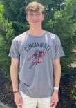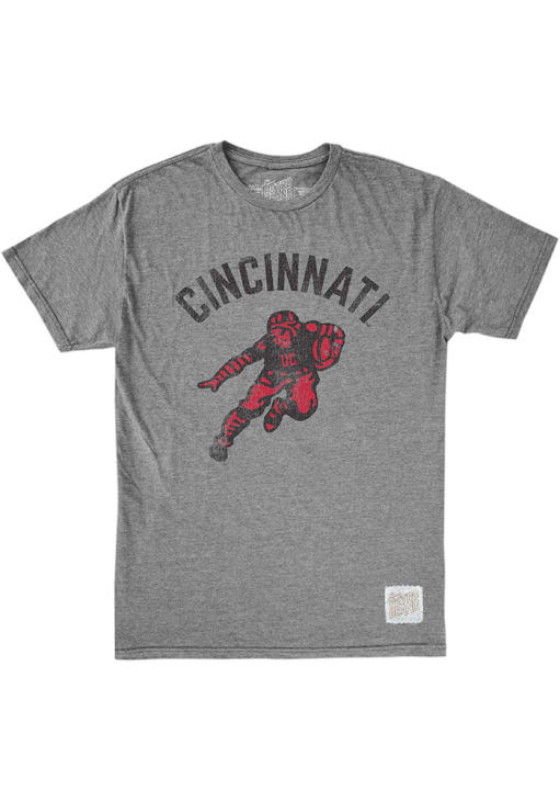 Support your Cincinnati Bearcats in this Grey Short Sleeve Fashion Tee! This Triblend Football Fashion T Shirt features a distressed screen print Cincinnati arched over Football player on front chest. Be ready to yell "Go Bearcats!" when you wear this Cincinnati Short Sleeve Fashion T Shirt in your favorite stadium or on the street.