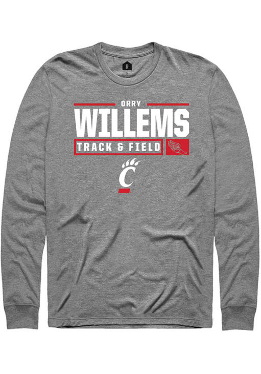 Orry Willems Rally Mens Graphite Cincinnati Bearcats NIL Stacked Box Tee