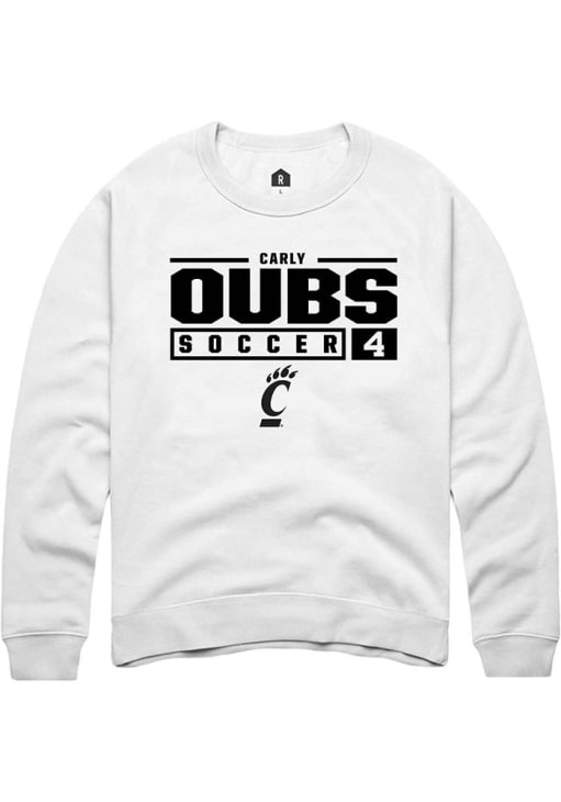 Carly Oubs Rally Mens White Cincinnati Bearcats NIL Stacked Box Crew Sweatshirt