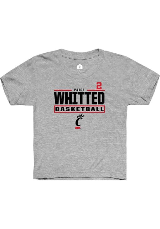 Kids, support your favorite player in this Youth Grey Cincinnati Bearcats Paige Whitted Short Sleeve Player Tee! This Player T-Shirt features a NIL graphic, so Paige Whitted can feel your team spirit! This is a perfect Youth Player T-Shirt to wear either everyday or on game day. Go Bearcats!!