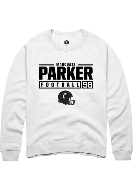 Marquaze Parker Rally Mens White Cincinnati Bearcats NIL Stacked Box Crew Sweatshirt