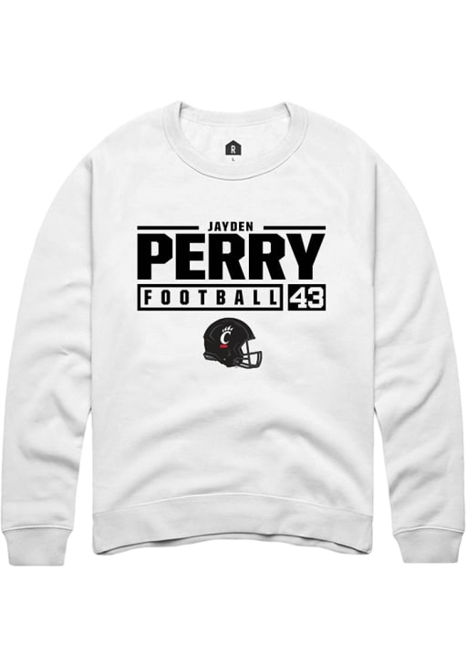 Jayden Perry Rally Mens White Cincinnati Bearcats NIL Stacked Box Crew Sweatshirt