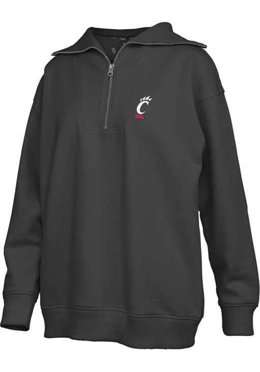 Embrace the warmth and showcase your Bearcats pride with our Cincinnati Bearcats Long Sleeve Qtr Zip. This Womens Black Thelma Long Sleeve Pullover offers a embroidered team logo on left chest for the perfect combination of comfort and style. Elevate your everyday look with this must-have Cincinnati Bearcats Long Sleeve Qtr Zip.