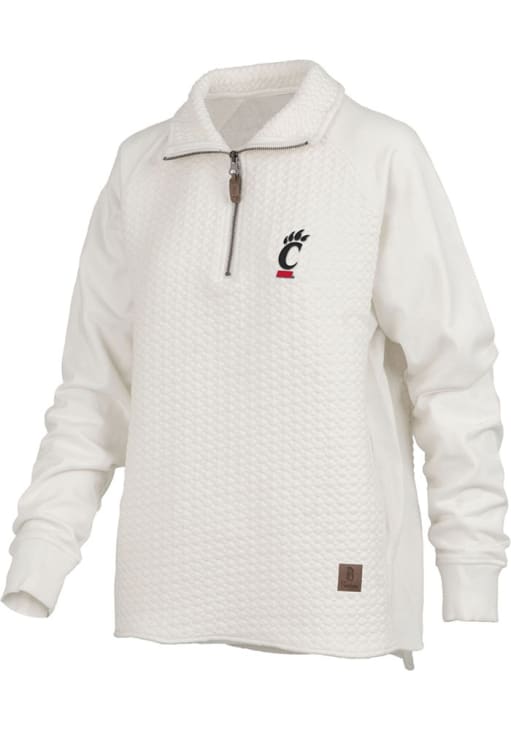 Embrace the warmth and showcase your Bearcats pride with our Cincinnati Bearcats Long Sleeve Qtr Zip. This Womens Ivory Salem Long Sleeve Pullover offers a embroidered team logo on left chest for the perfect combination of comfort and style. Elevate your everyday look with this must-have Cincinnati Bearcats Long Sleeve Qtr Zip.