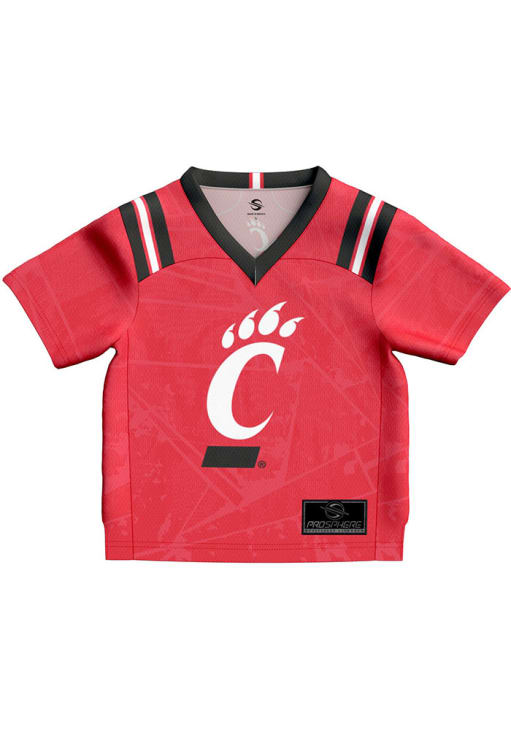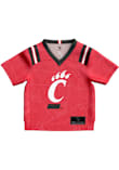 Product Details Product Details Stitched jock tag at bottom left hemScreen-print front and back numbersTagless collar with interior tapingClean-finished internal seamsStandard fit: not too tight and not too looseFit: True to Size100% POLYESTERMachine wash coldImported Officially Licensed Every young Cincinnati fan needs a Baby Red Cincinnati Bearcats Football Jersey! This Cincinnati Jersey features a screenprint number on front with team name and number on back. Dress up your little Bearcats for gameday!