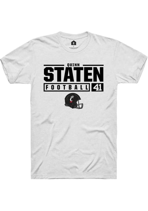 Quinn Staten White Cincinnati Bearcats NIL Stacked Box Short Sleeve T Shirt