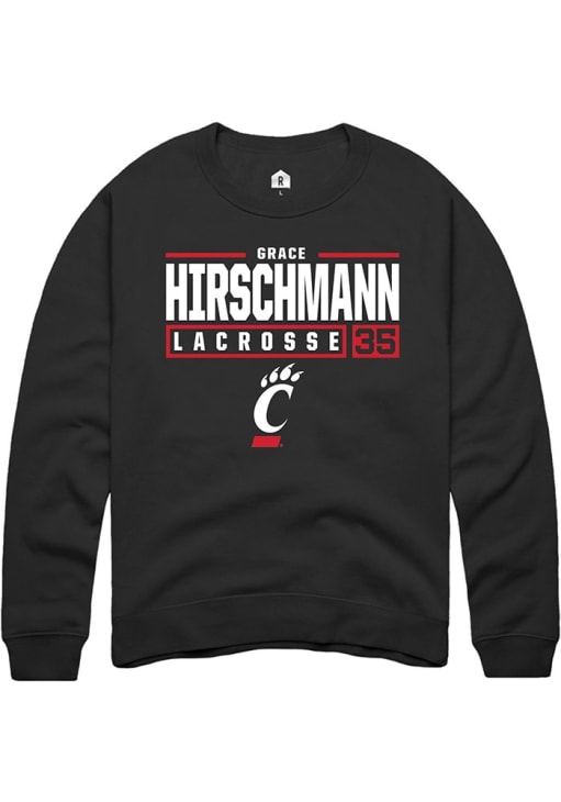 Grace Hirschmann Rally Mens Black Cincinnati Bearcats NIL Stacked Box Crew Sweatshirt