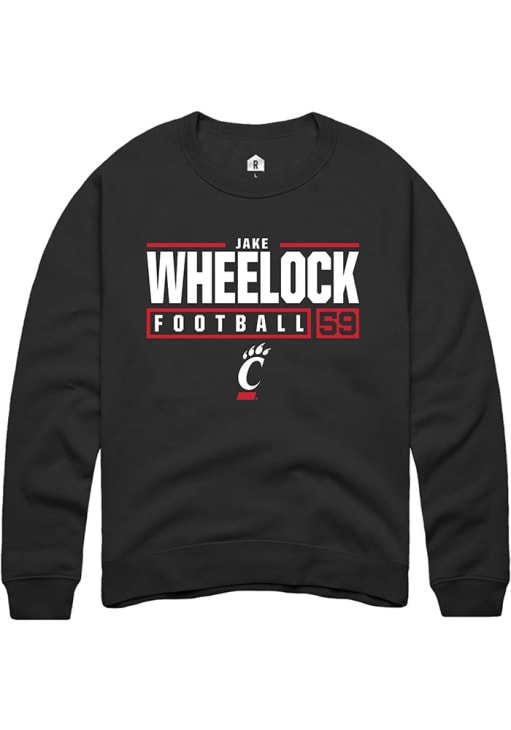 Jake Wheelock Rally Mens Black Cincinnati Bearcats NIL Stacked Box Crew Sweatshirt