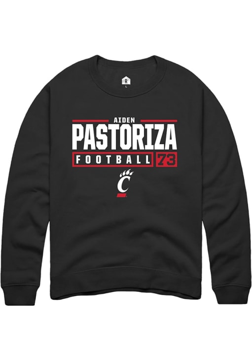 Aiden Pastoriza Rally Mens Black Cincinnati Bearcats NIL Stacked Box Crew Sweatshirt