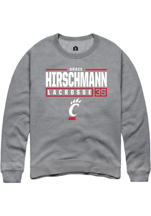 Grace Hirschmann Rally Mens Graphite Cincinnati Bearcats NIL Stacked Box Crew Sweatshirt