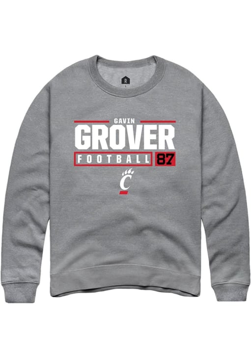 Gavin Grover Rally Mens Graphite Cincinnati Bearcats NIL Stacked Box Crew Sweatshirt