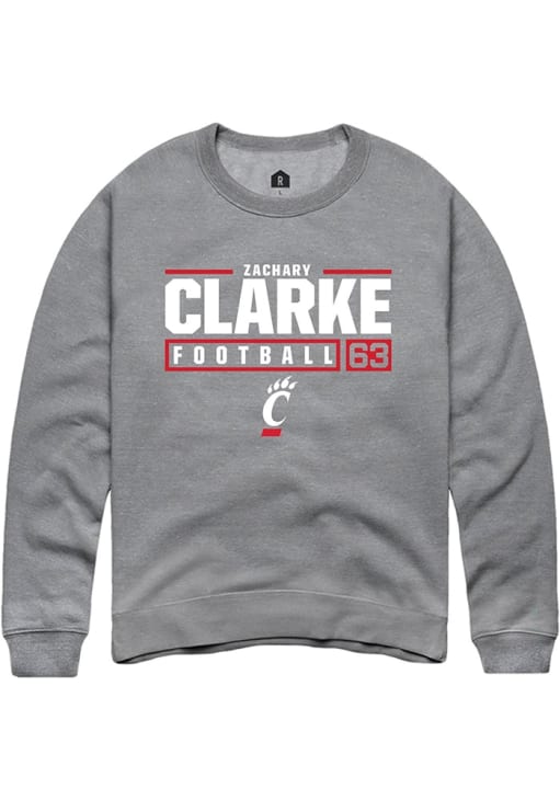 Zachary Clarke Rally Mens Graphite Cincinnati Bearcats NIL Stacked Box Crew Sweatshirt