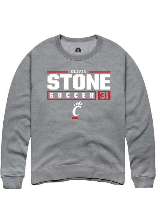 Olivia Stone Rally Mens Graphite Cincinnati Bearcats NIL Stacked Box Crew Sweatshirt