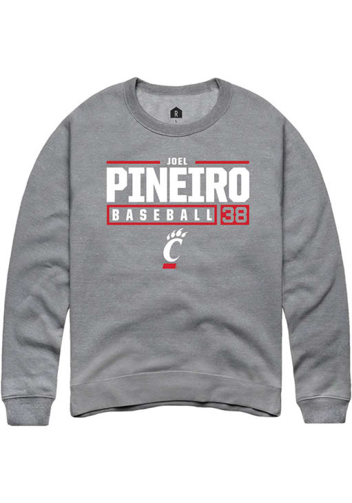 Joel Pineiro Rally Mens Graphite Cincinnati Bearcats NIL Stacked Box Crew Sweatshirt