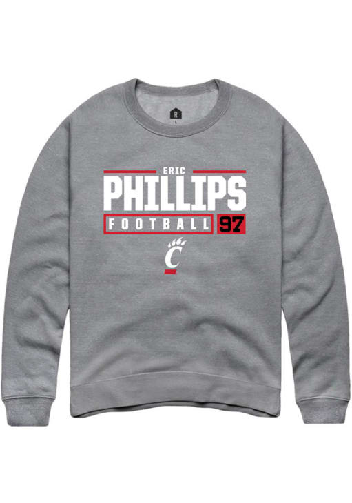 Eric Phillips Rally Mens Graphite Cincinnati Bearcats NIL Stacked Box Crew Sweatshirt