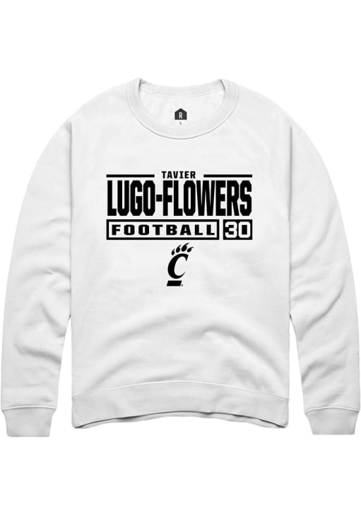 Tavier Lugo-Flowers Rally Mens White Cincinnati Bearcats Football NIL Stacked Box Crew Sweatshirt