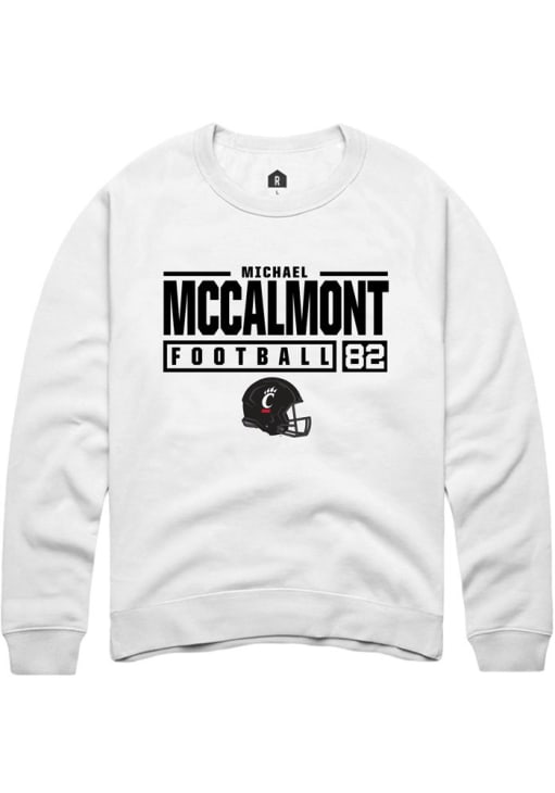 Michael McCalmont Rally Mens White Cincinnati Bearcats NIL Stacked Box Crew Sweatshirt