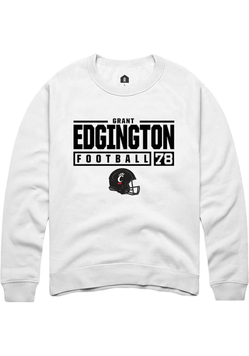 Grant Edgington Rally Mens White Cincinnati Bearcats NIL Stacked Box Crew Sweatshirt