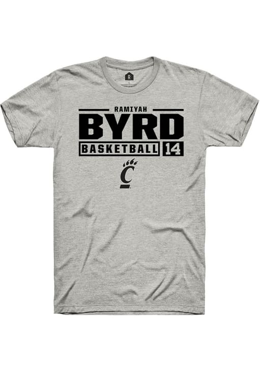 Ramiyah Byrd Ash Cincinnati Bearcats NIL Stacked Box Short Sleeve T Shirt