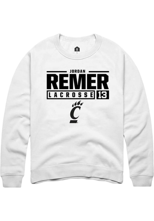 Jordan Remer Rally Mens White Cincinnati Bearcats NIL Stacked Box Crew Sweatshirt