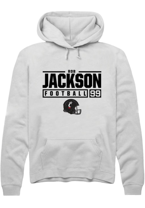 Rob Jackson Rally Mens White Cincinnati Bearcats NIL Stacked Box Hooded Sweatshirt