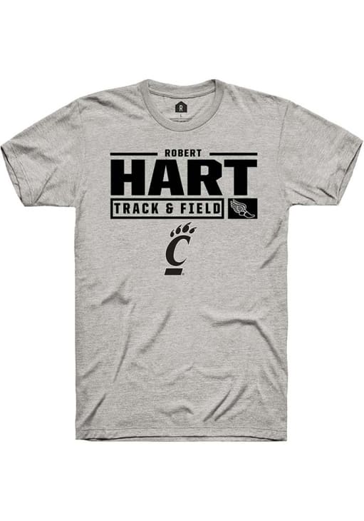 Robert Hart Ash Cincinnati Bearcats NIL Stacked Box Short Sleeve T Shirt
